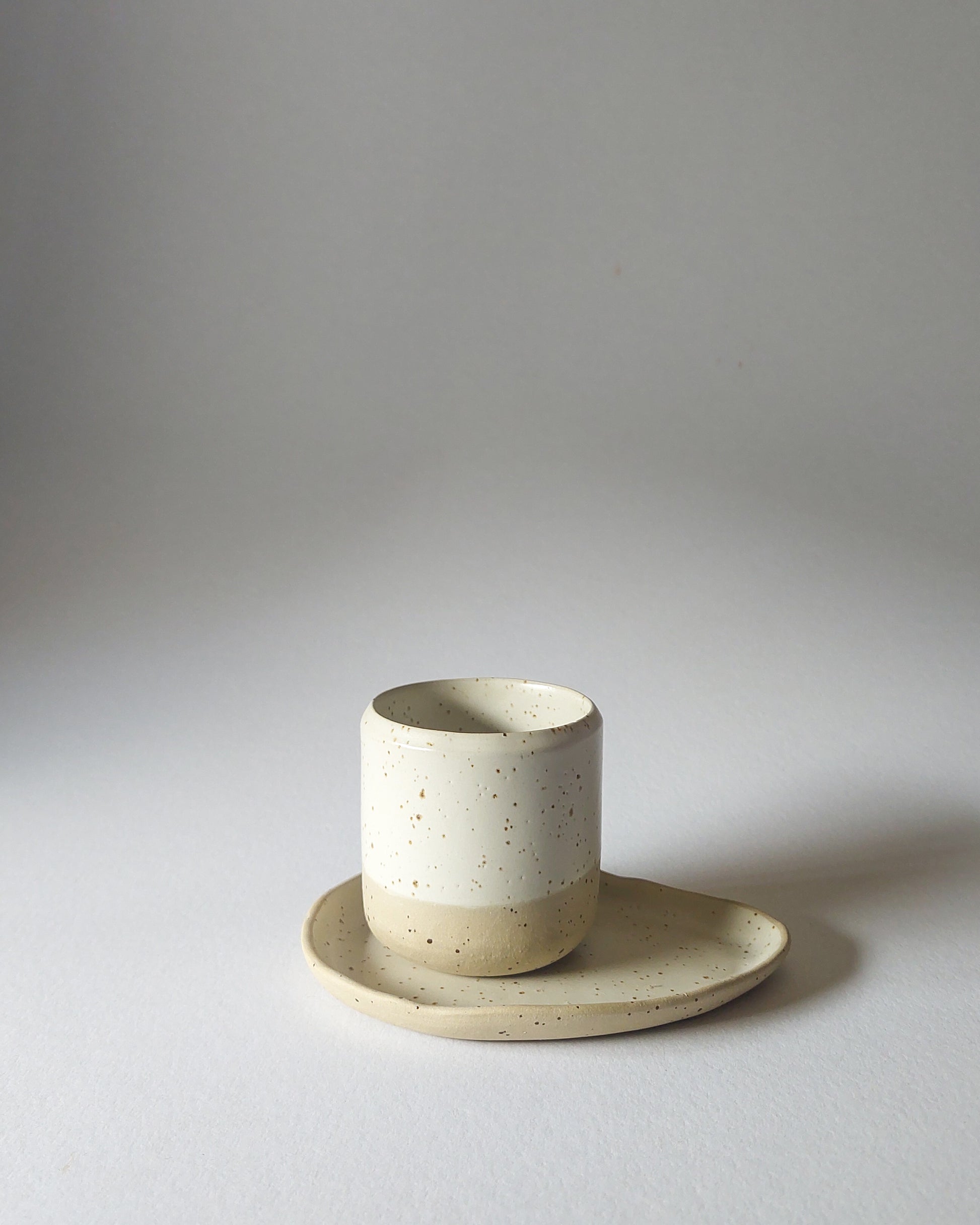 Material: beige with black dots stoneware glazed at high temperature. Microwave and dishwasher safe.