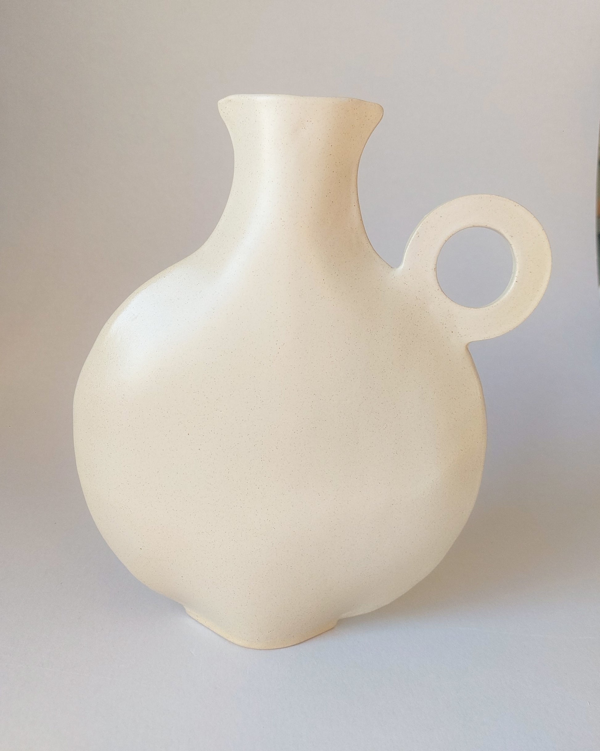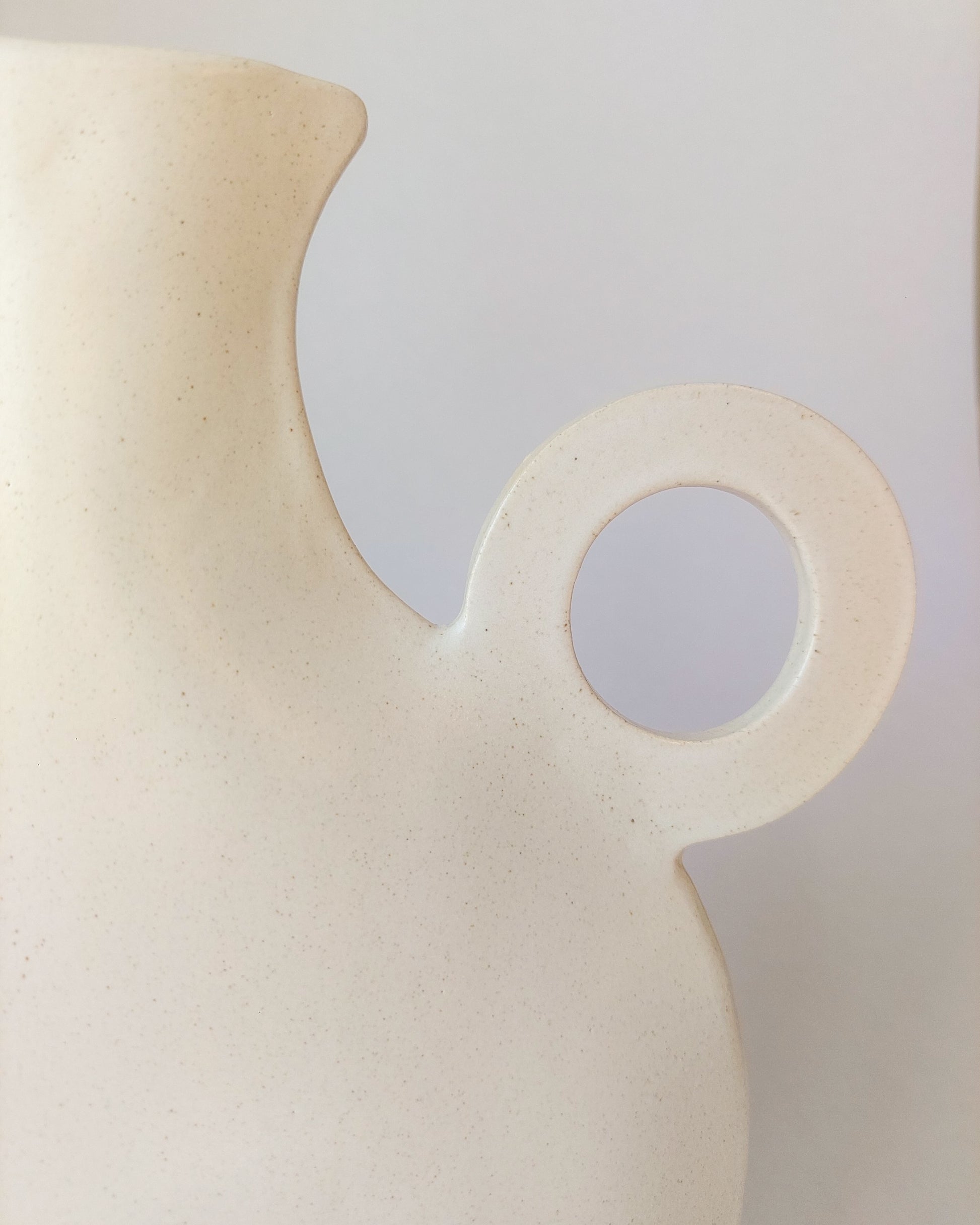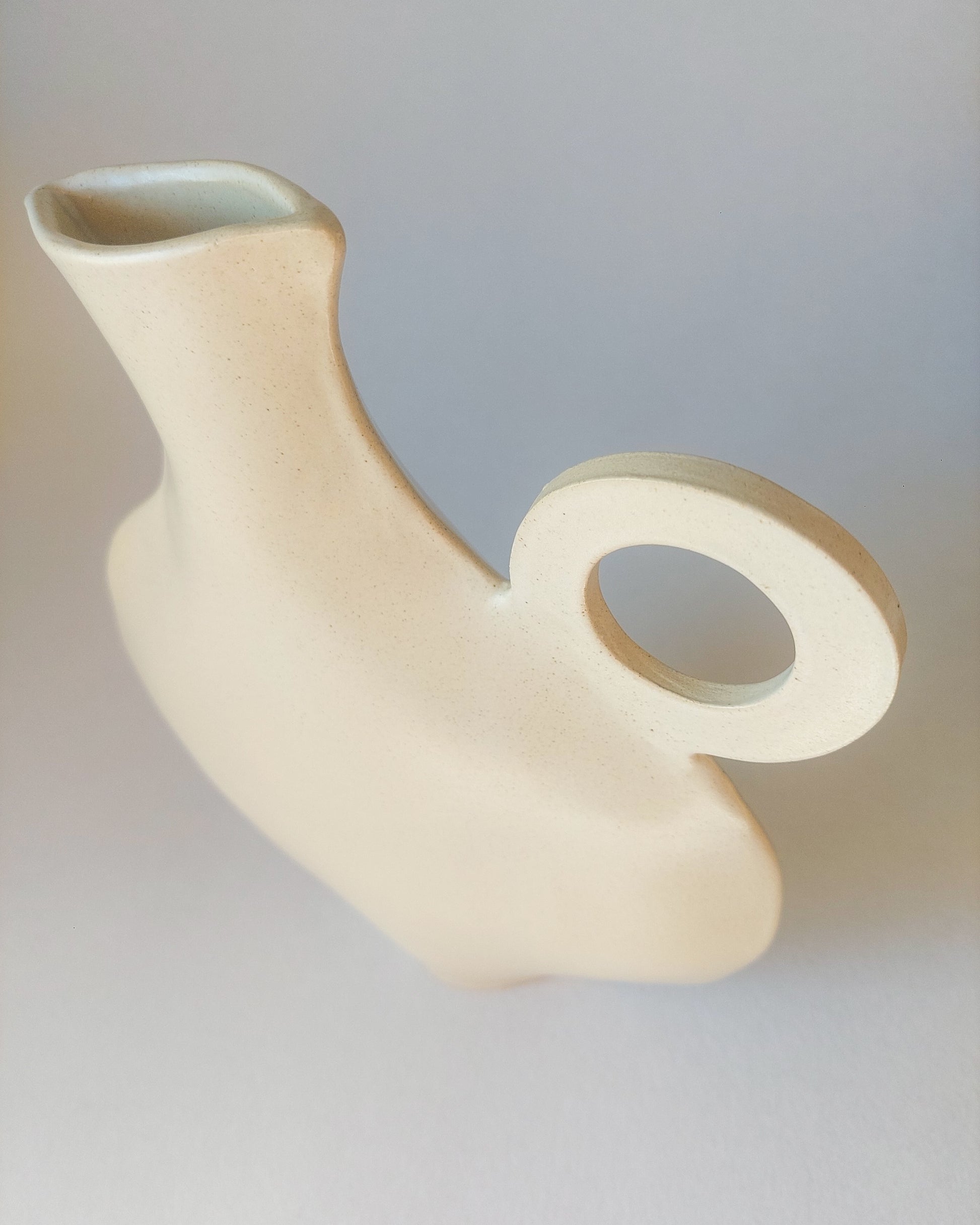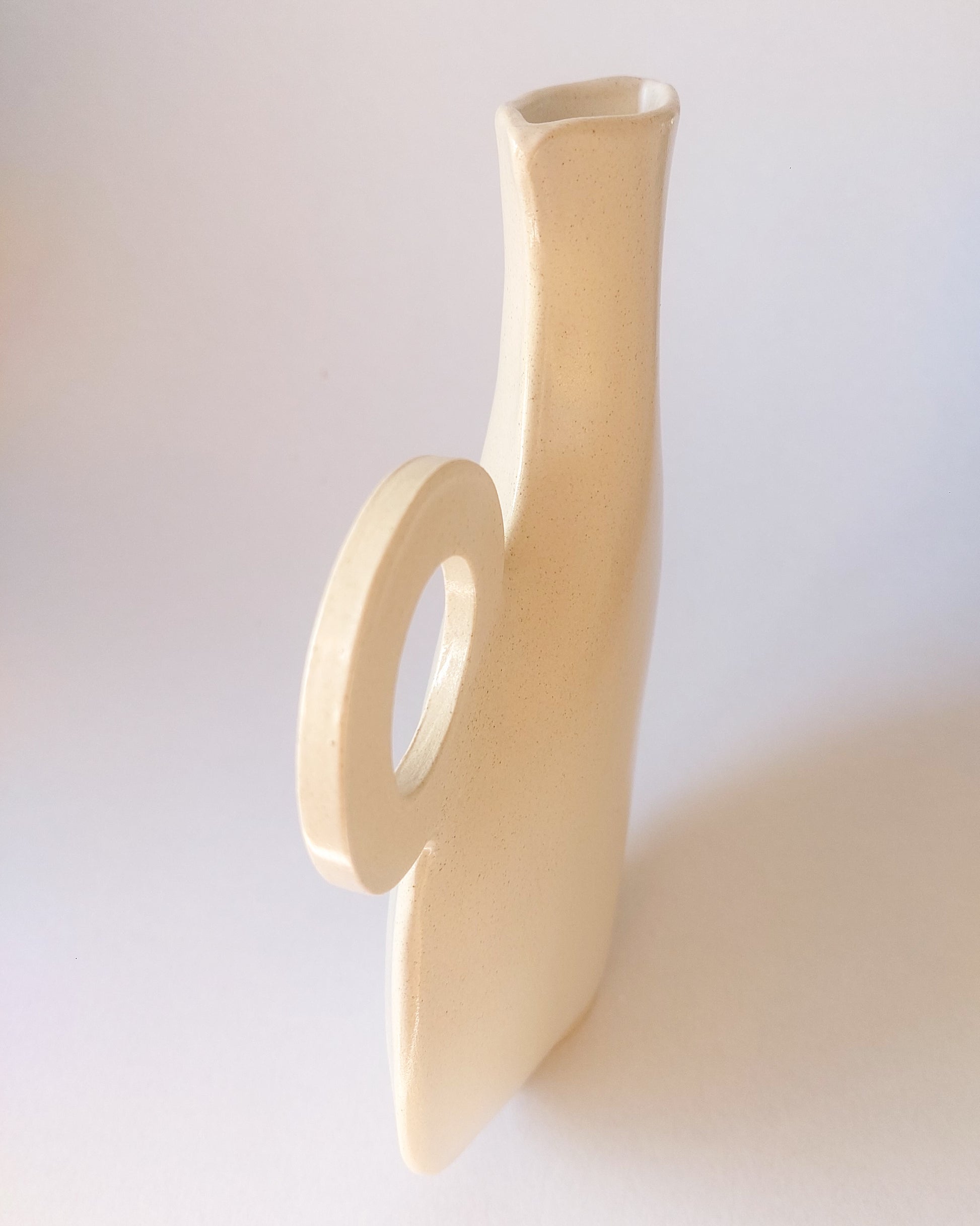 This 2D vase blends minimalism and elegance with its flat shape and smooth curves. Handcrafted with a circular handle for charm and functionality, it stands as a unique and contemporary decorative piece.